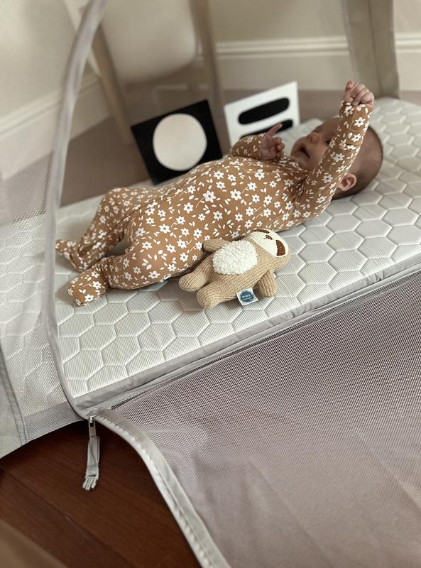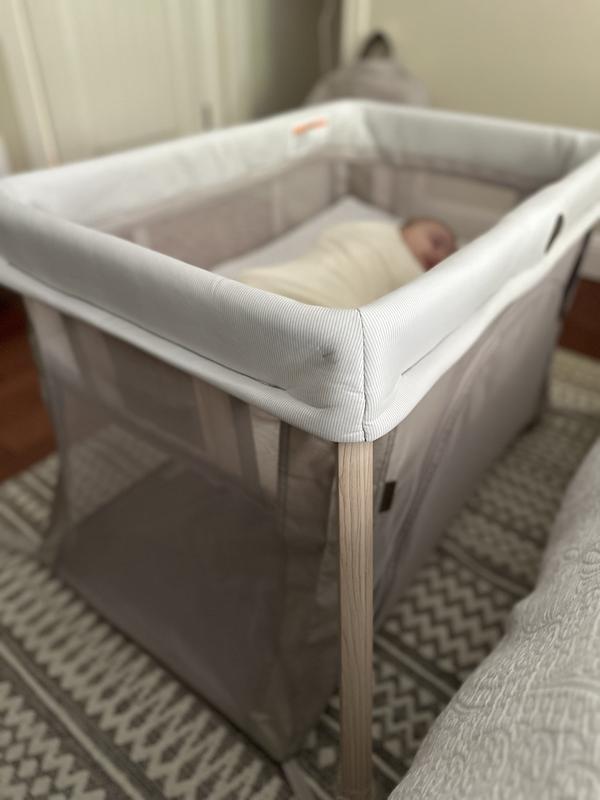 Thanks to the Stellar Product Testing Panel for providing me with this play yard. I have been using it for a few weeks now and have been quite impressed with it. It fits in so nicely with my decor that I have just kept it out in the living room as a perfectly convenient contained play space for my 6 month old while I am doing other chores. She loves to lay down, roll around, and sit in it to play with her toys. The safety zipper is a great feature! I received the product in the Oat color and it is so aesthetically pleasing, especially compared to other baby items. The legs are a lovely light wood color. The play yard feels very luxurious and well-made. The mattress is nice and cushy (I laid on it myself to confirm) but has a weird bump in it for some reason. It was so easy to put together - no tools required! It isn’t huge, but I think that is one of the pros because it doesn’t take up too much space in a room and it’s portable so I’m looking forward to bringing it to the park or other outdoor events. I appreciate that there are 3 modes for this play yard so I can use it with my next baby too from birth (my 6 month old is too heavy for the bassinet feature now). I do wish that the carrying bag was more padded so it was protected when taking it during travel. I would probably carry it on to be safe versus checking it with luggage. Overall, this is a great choice for a high-end, sturdy, versatile play yard.