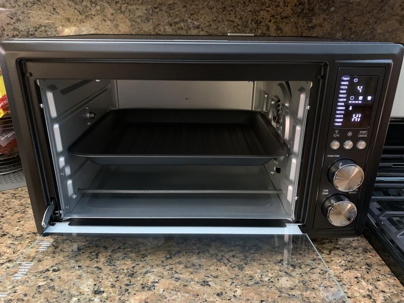 I love my Air Fryer Toaster-the only reason gave it 4 vs 5 stars is as follows; 1. It's awkward to clean the inside 2. The bottom grease tray needs to be covered I bought two sheets that are very easy to clean but unfortunately I did not do that immediately so it did get stained and there doesn't seem to be a replacement for that. It's not needed but it is OCD on my part to want to replace the piece. I would get it again also if you like cornish hens it is great with its rotisserie