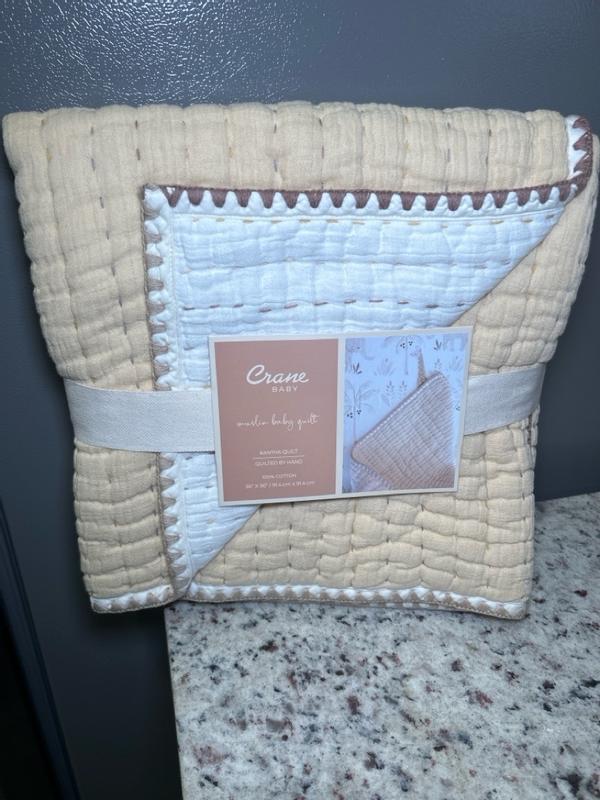 Crane baby Kendi quilted blanket is so soft and breathable because it’s made up of pure cotton muslin. Perfect size for baby, color is neutral. Thank you Influenster.