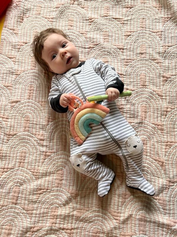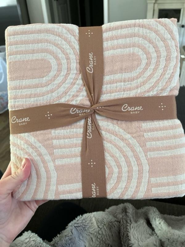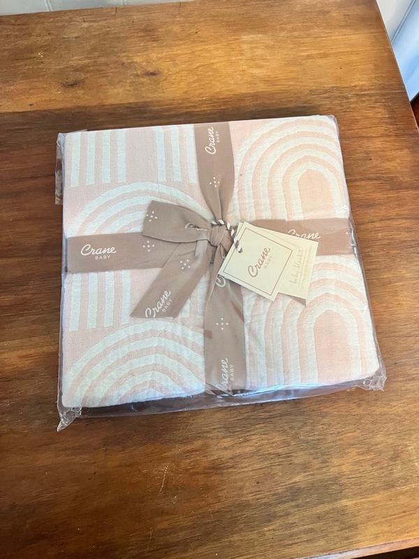 I’m not going to lie I didn’t want to unwrap this blanket. It was so perfectly wrapped and tied in a bow, I felt bad haha. I love the blanket though, I wasn’t expecting it to be so thick, most muslin blankets are very thin. I love the minimal rainbow design. The size is perfect for my baby girl. It’s very soft and comfortable, overall this is a very good blanket. We love it!