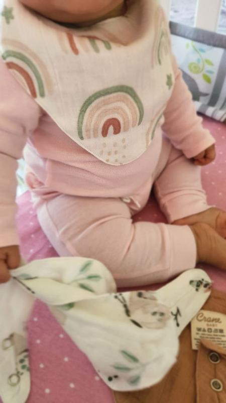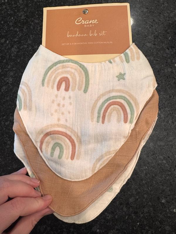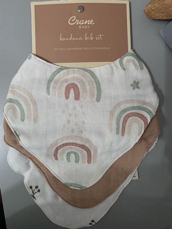 I love all things Muslin and these are no exception. Muslim bibs and burp cloths are essential in the newborn period. Easy to use and clean. Cute design!