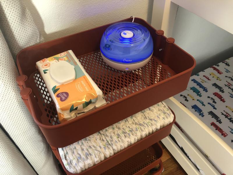 I received this product for review from Crane. I like the small size and the night light feature. It does have quite a bit of bubbling that can be heard throughout the night but it isn’t overwhelming. I do wish it could go two nights without refilling but that’s what the larger ones are for. Will definitely put it to good use.