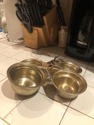 My 4 piece measuring cups were attractively crafted with a brass finish! It is my belief that I may be able to pass them down through a couple of generations!