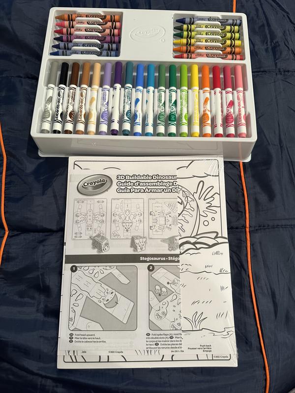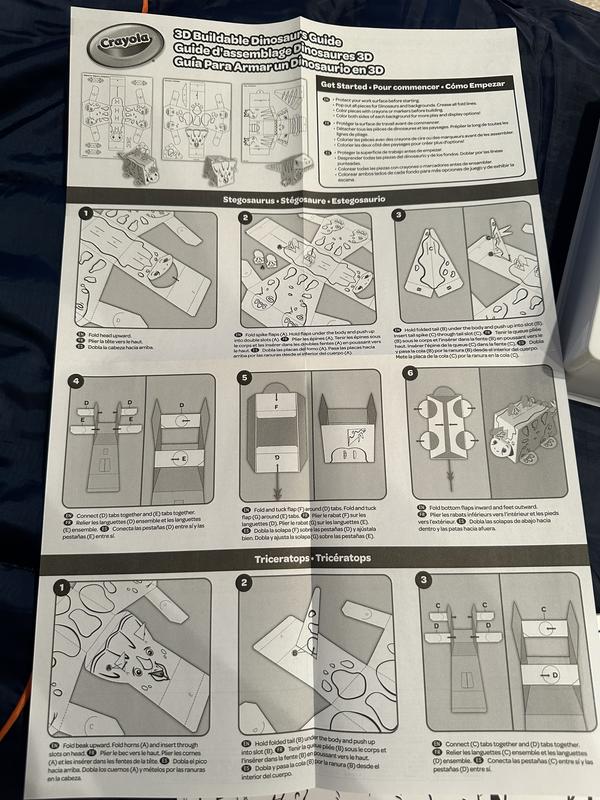 My 4 year old was over the moon when she saw this kit! It came with everything she needed to get lost in a little dino world for quite a while. She especially loved coloring the 3d characters and creating a diorama with them and the backgrounds. The backgrounds need a bit of reinforcement to stand up, the feet didn't quite support their weight. Overall this was a huge hit!