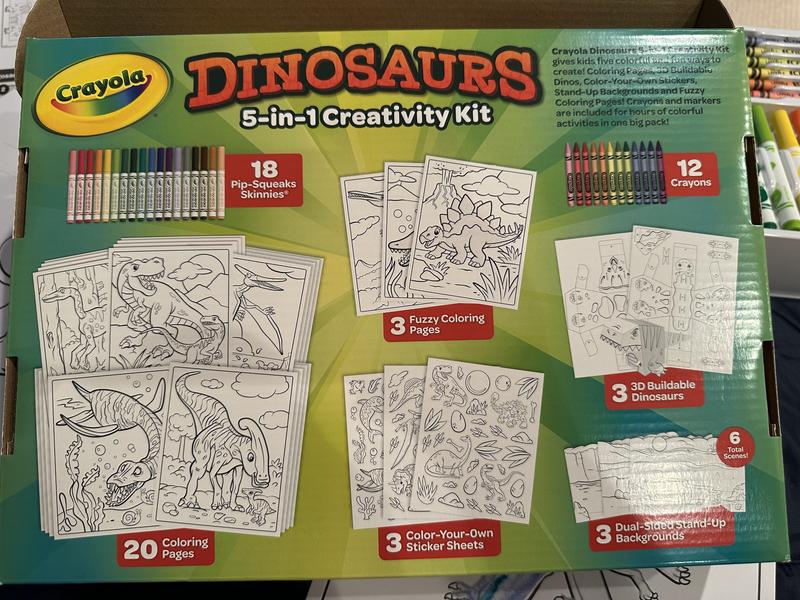 My Dino-obsessed boys (2.5 and 4) will always want anything dinosaur related, so this really was a special treat for them!! The coloring stickers were my 2.5 year olds favorite part. My 4 year old loved the fuzzy coloring pages. I love pipsqueaks for their little hands, so in total the whole kit is a win!!