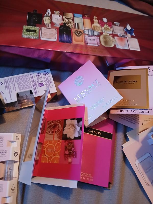 They threw a bunch of samples in a box. I expected them to be lined up neatly in grooves of a cardboard insert. Most of them state, "Sample-Not for sale." The Michael Kors sample states, "Sample not for sale. ILLEGAL SALE." I paid for free samples that are not supposed to be sold according to their individual packages.