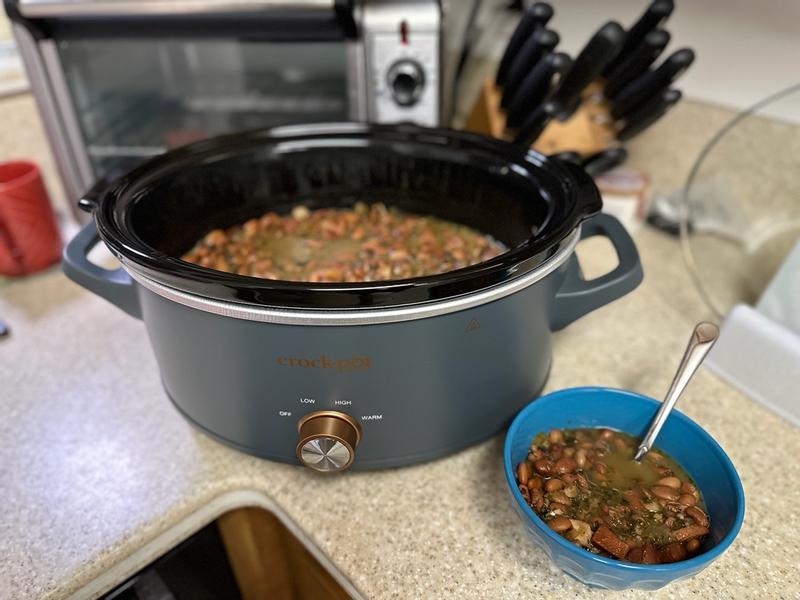 This is a beautiful crockpot that will last you a lifetime. I absolutely love the slate blue color. Much prettier than the plain black one I had. It’s super easy to clean as you can throw the stoneware and the lid in the dishwasher. The first dish I made was a bean and ham soup, which came out delicious. My only complaints are that the cord is way too short, and it doesn’t have timed options like my old one. That’s the only reason I docked one star. But, you can never go wrong with Crockpot! Highly recommend!