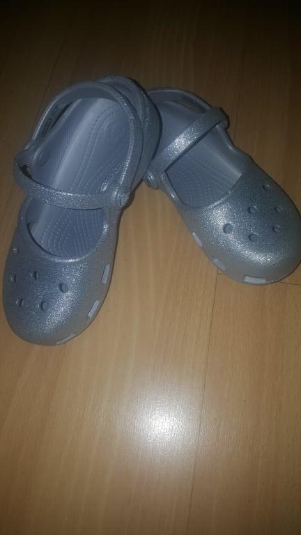 My 5 year old loves her shiny new Crocs! She says they are super comfy. I love that they have an extra strap that helps to keep the Crocs from slipping off her feet. This is a big help because they fit her a bit big. We purchased the size 11. The only downside is that the shiny coding has started to peel.