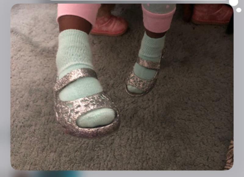 My G-Baby up north, it's very cold there. The first thing she do in the morning is put her socks on and her shinny shoes. She will not take them off.