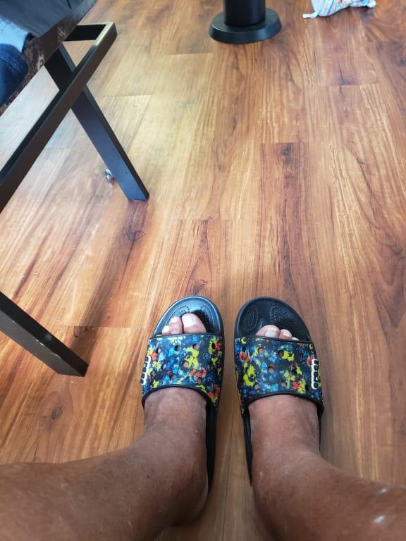 I have several pair of crocs. They a little bit too big, but I love them they're good slides and heavy duty.