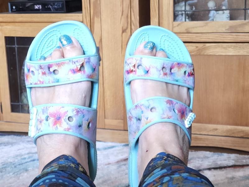 Cute looking sandals but upper straps across feet are very painful and not a soft material. Crocs needs to return to a more rubber type material as this cheap plastic is very uncomfortable.