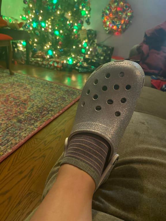 Never thought I'd say "I love Crocs!" - but I do. I have wide feet and they fit perfectly. The sparkle is fantastic! I don't love the creases that have appeared across the top, but these shoes still make me happy whenever I put them on. Took a minute to get used to weird bumpy texture, but I've now worn them for entire days at work and they were truly comfortable.