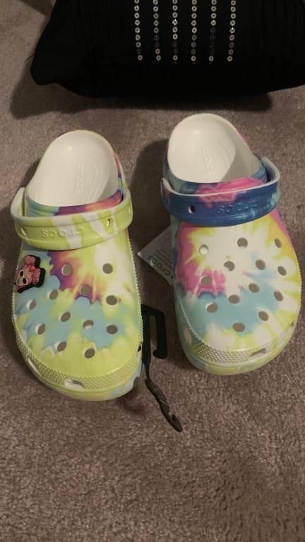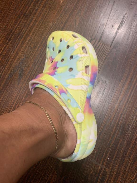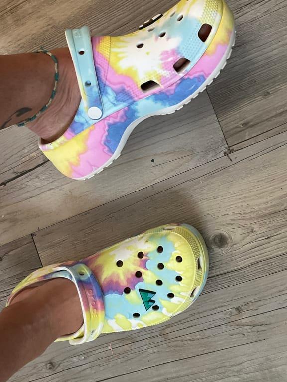 I love wearing my Platform Tie-Dye Graphic Clog. They go well with so many colors. They are a little taller than the regular Clog. You can't go wrong with Clogs.