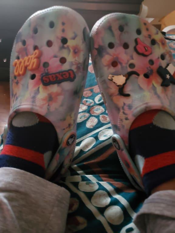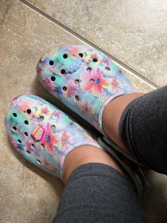 I love my new crocs, the flower print is beautiful. They are so comfortable.