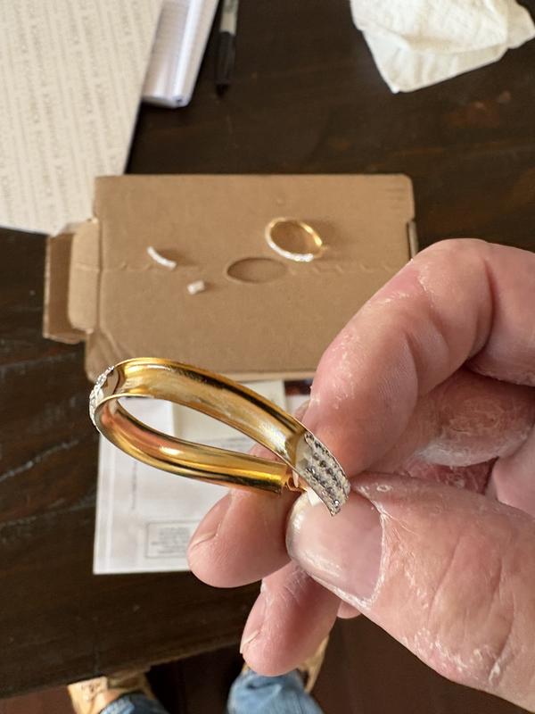 Item broke the minuet my wife took them out of the box. When we went to the store to exchange them for another set, the one in the store also was broken. Very poor design. The "diamond" band isn't glued on very well. Store personnel told us this is common with these.