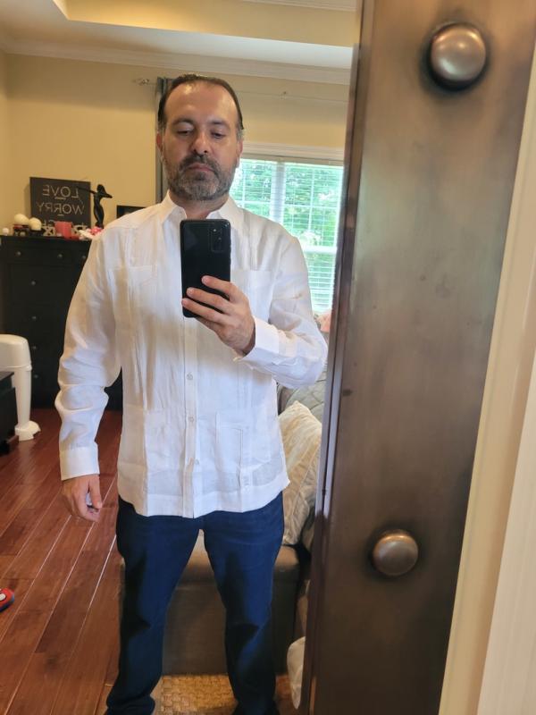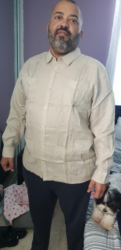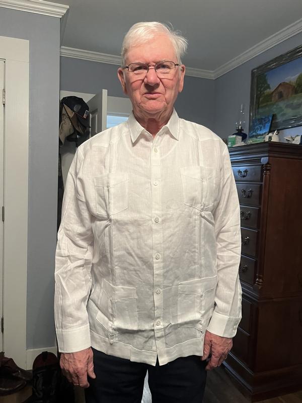 • This linen long sleeve guayabera can be machine washed and machine dried, without the need for line drying or flat drying. While it may require light ironing to achieve a crisp look, dry cleaning is not necessary