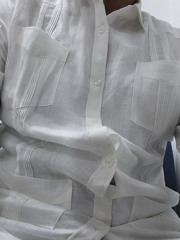 • This guayabera features pintuck detailing that adds versatile ridged detail and creates texture on the fabric. Embrace the timeless elegance of a linen guayabera with this stylish and comfortable piece