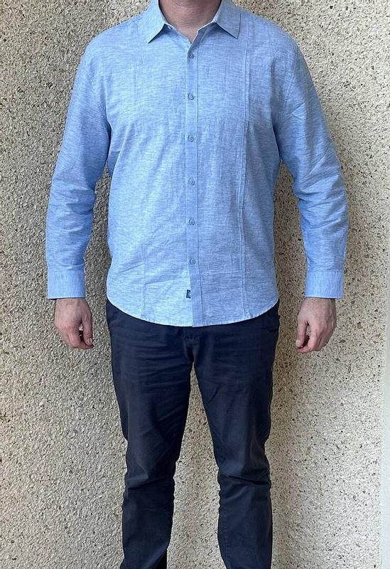 (This is a sponsored review) But I love this shirt! It’s lightweight and comfortable as you’d expect from linen. The panels on the front are a nice design decision that dresses it up some and keeps it looking neat. The fit is true to size (I’m 6’3” 225 in XL). I wore it tucked in to work and it’s great for business casual with khakis but it’s just the right length to wear untucked. Would definitely wear with the sleeves rolled up with jeans or shorts too.