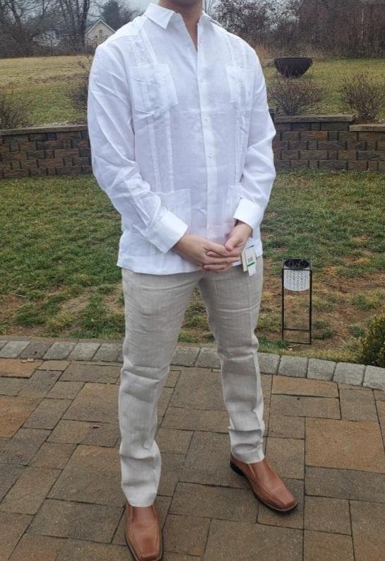 I ordered this beautifully crafted guayabera for my husband to wear at a wedding in Mexico. I followed the recommendation to order 1 size down for sizes L and XL, and ordered a M which was a perfect fit for him! The quality of the linen was excellent, and the weight of the fabric was comfortable for the summer heat and humidity.
