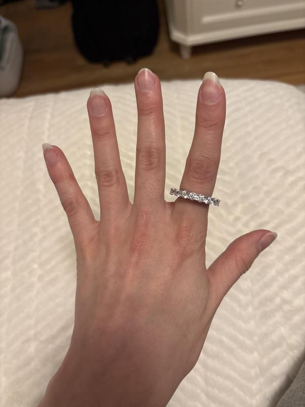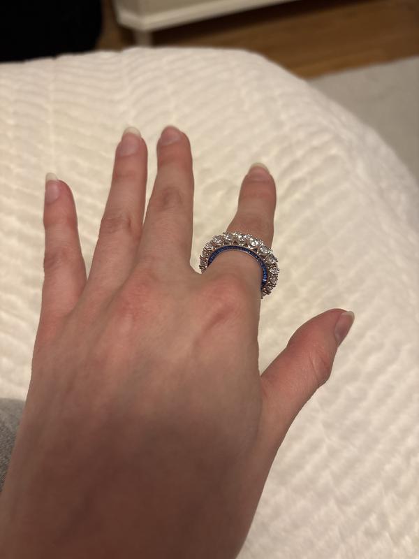 Cubic Zirconia and Blue Spinel Round and Baguette Eternity Ring