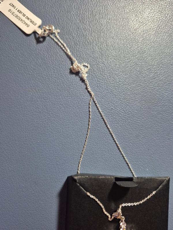 After searching for a while I decided to purchase this. I waited for it to go on sale. I waited almost 2 weeks to get it. It arrived today and was very disappointed. It is missing one of the cubic zirconia gems at the bottom, the chain looks nothing like the picture, and the chain has a big knot in it. Return