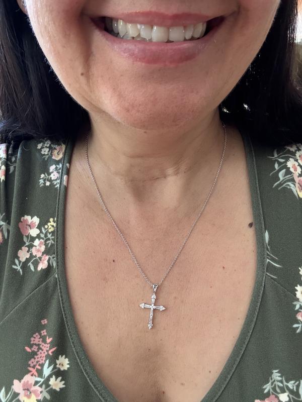Cubic Zirconia Cross Pendant 18" Necklace in Silver Plate or Gold Plate