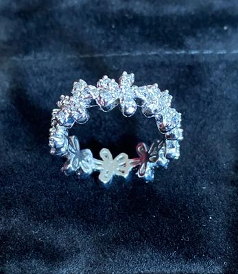 Cubic Zirconia Flower Band Ring in Silver Plate & 18K Gold Plate