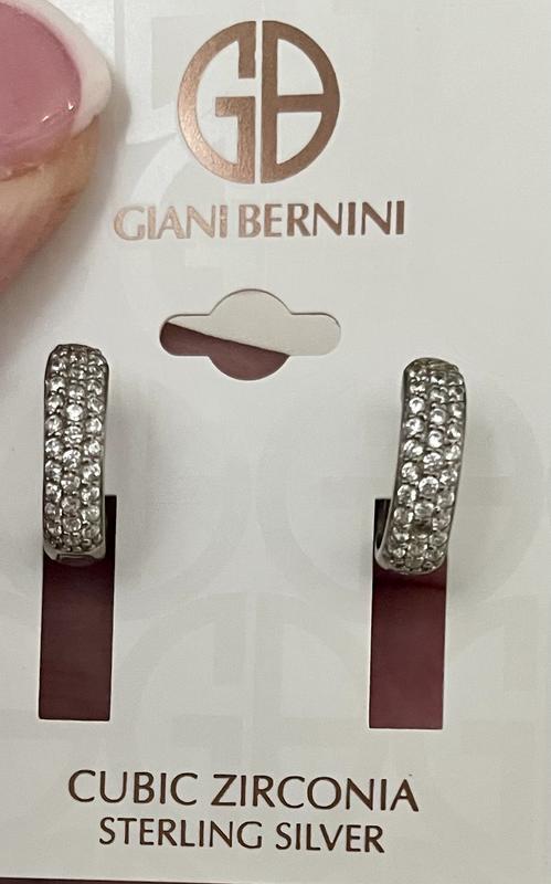 Giani BerniniCubic Zirconia Oval Huggie Hoop Earrings in Sterling Silver or 18k Gold Plated Sterling Silver