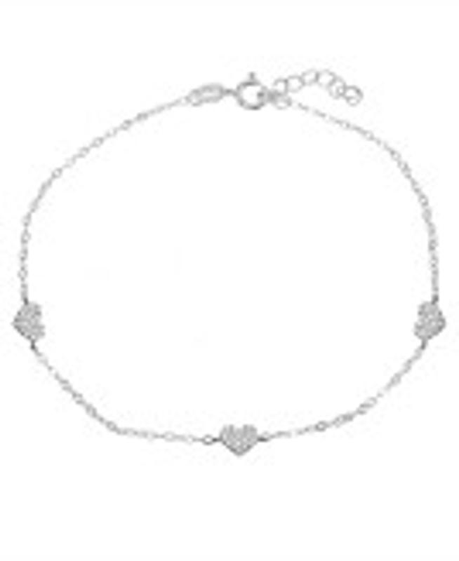 Cubic Zirconia Pavé 3 Heart Station Ankle Bracelet in Sterling Silver or 18K Gold-Plated Sterling Silver