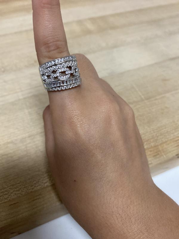Cubic Zirconia Round and Baguette Chain Link Ring