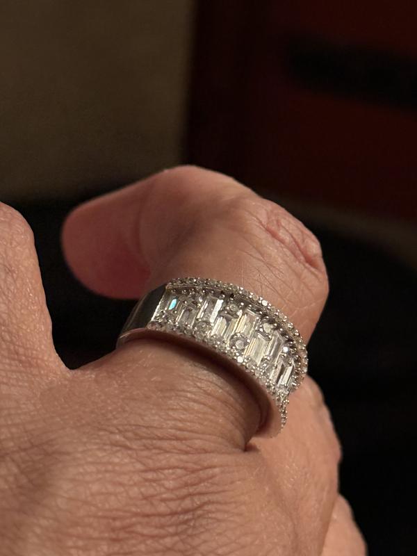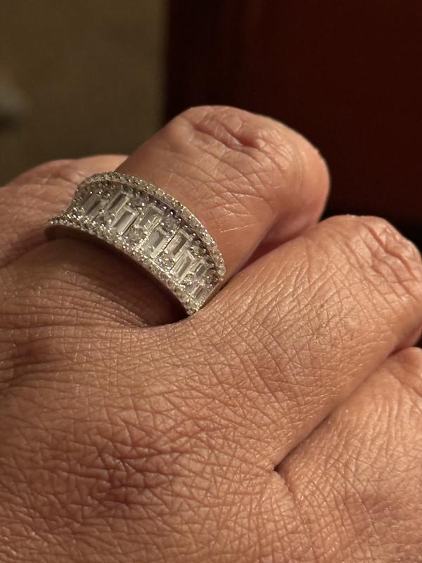 Cubic Zirconia Round & Baguette Statement Ring in Sterling Silver