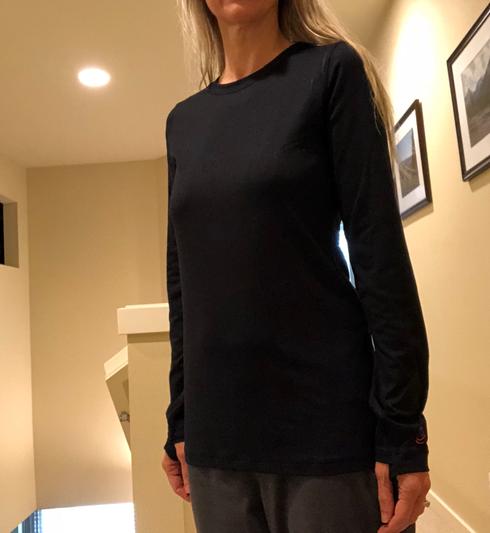 I have been a fan of Cuddl Duds for some time but this is my favorite crew ever. The polyester spandex blend has ceramic fibers that create warmth and wicking in a lightweight sporty crew perfect for a run or for layering under scrubs at work. The shirt is true to size but slim fitting which makes it perfect for layering and excercise. It is comfy and warm and washes well. I will be getting a couple more!