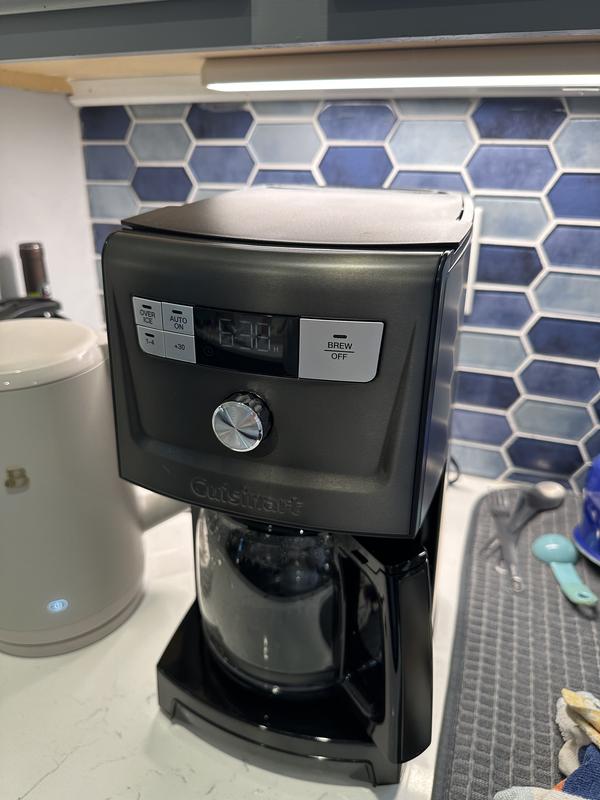 We have had previous models of the Cuisinart 14-cup coffee makers. This one has the same exact complaint that we have sent to Cuisinart multiple times, when you open the top panel after it has brewed coffee water runs down the back of the coffee maker and all over the area behind it. That's one star off. Secondly, this Cuisinart doesn't offer a selection to make a stronger brew as all of our previous models did. This coffee maker doesn't make coffee as flavorable or strong as the prior ones did. We have to add several extra cups of ground coffe to achieve a good flavor, so minus another star.
