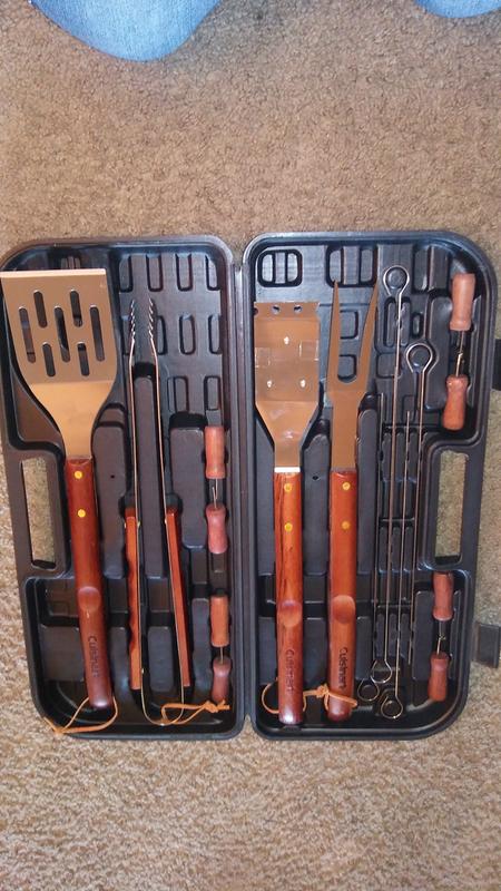 I'm so glad I bought this versatile and hardy set of grilling equipment. It looks and feels very high quality and has a lot of different tools for the avid griller. I would recommend this to anyone who enjoys grilling. Especially useful when throwing a grilling party! Your friends will thank you. :)