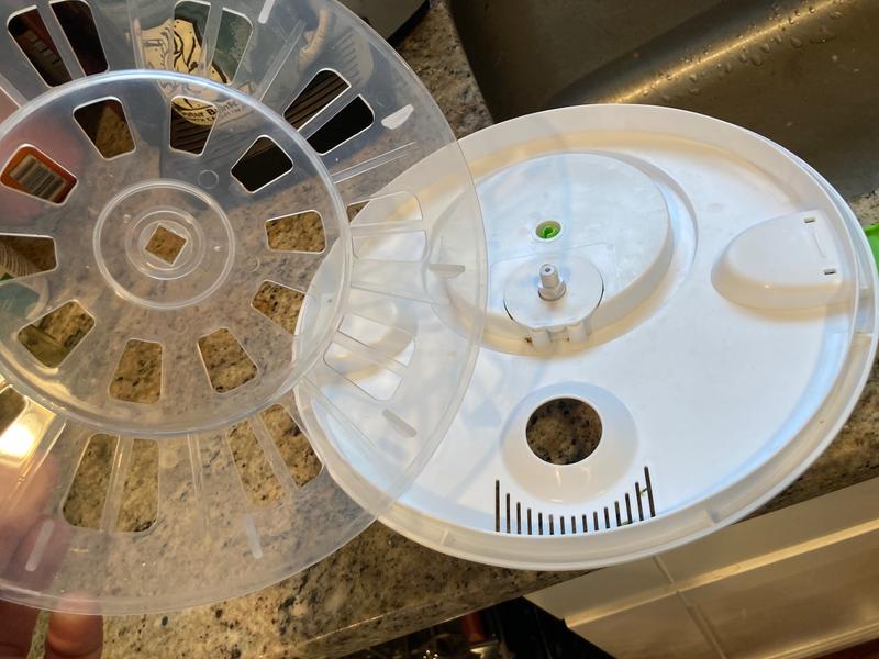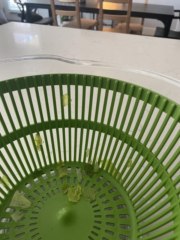 Quite an improved spinner from the previous ones I've used. I love that I can pour the rinse out without taking it apart. Smooth and easy to make it spin. Fresh garden lettuce quickly is rinsed and dried.