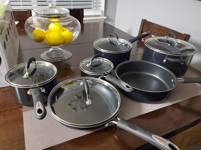 The cookware cooks good. It is not as easy to clean as it says. If you have browned something, it is more difficult to clean. We have been very careful to follow instructions. We have only washed with a sponge or a soft cloth. Also the black is flaking from the bottom. Photos are included.