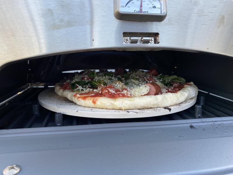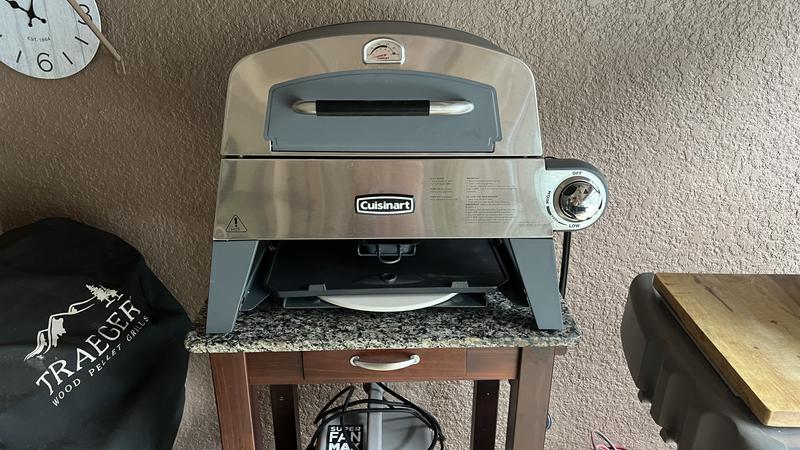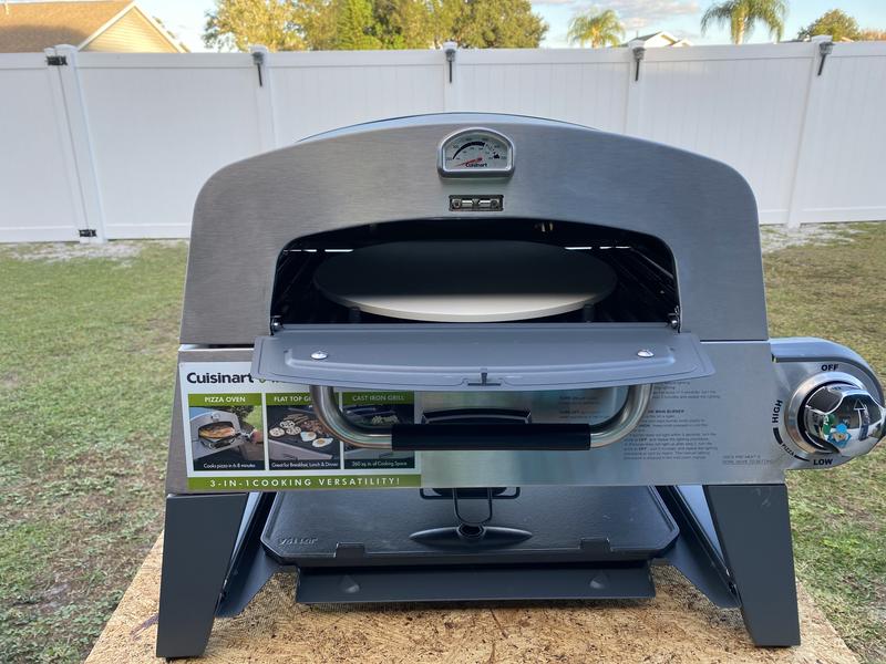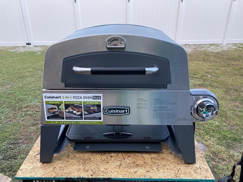I got this for Christmas from my daughter. I wanted a small gas grill and I found this and I thought it sounded good, grill, griddle and pizza oven all in one so I put it on my wish list. I have use the pizza oven the most and it works great. You have to be careful and not get to hot or the crust will burn and the rest of the pizza will be raw. I found that 500-525 works well an even cook and takes about 8-9 minutes. I recommend removing the pizza stone from under the grill when not being used. Grease dripped on it while it was store and stained the stone and created a cold spot on the stone. That is one reason I only give 4 stars the other is the grease pan is horrible. It's super small and shallow it fills quickly and spills when being removed, that is how my stone got stained. I have not found any foil pan liners for it either. I tried foil but that was no help. The only thing that half way works putting a small ss bowl under it to catch grease. Fix that and I would give it 5 stars.