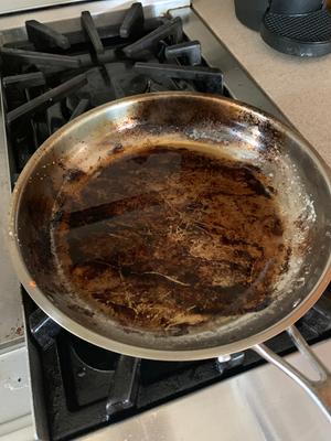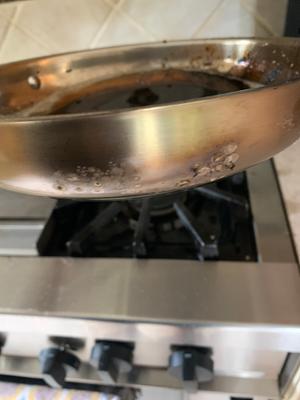 First, this cookware set is BEAUTIFUL, well made and impressive looking. However, EVERYTHING sticks to and stains them. I made poached eggs, boiled water and the residue stuck to the pan. Sautéed spinach and it left black marks all over the pan. I kept the temperature on medium as instructed and used warm white vinegar and a natural loofah to clean. Could not get them clean after one use. Real bummer because I loved them right out of the box but had to return them.