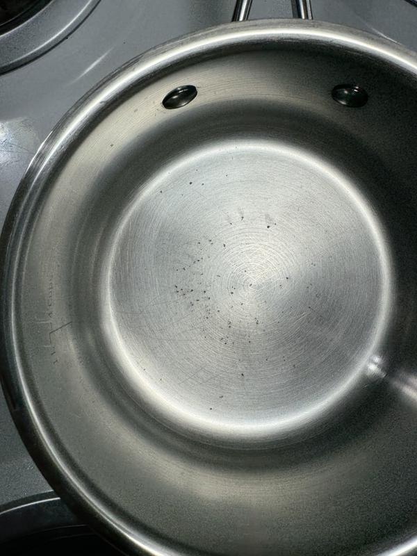 After first use i see some tiny black spot i tried to clean it but it steel there. I want to return it but i can't because i didn't keep the box.
