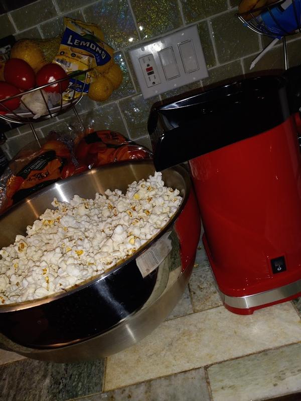 I bought this hot air popper after reading the reviews because I thought my old one was breaking. I finally got it out of the box to use it and plugged it in to the outlet and heard a popping sound and smelled smoke. I unplugged it and waited a little bit and tried again and heard a weird sound and smelled smoke again. Now it’s sitting in a box. Im very disappointed with my purchase especially since I never got to try it out.