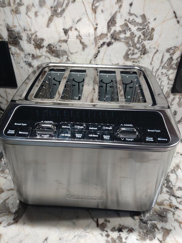 So disappointed in this version of the Cuisinart Toaster (having owned several over the years) Within the first 2-months, the other side stopped working - notcour fault, we handle this with care, as our last one, which was much more expensive and of much better quality, ended up having a huge dent in it!! But still works! This one is for our 2nd home! I hate waiting for Toast!! But I will not replace this one- not reliable!