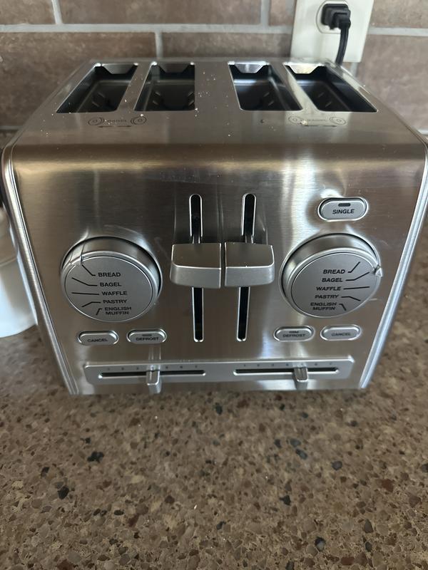 Hello- We are so sorry to hear about the trouble you’ve had with your toaster. Cuisinart is committed to providing the highest quality products and consumer satisfaction. Please contact us at 1-800-726-0190 or via email to customerservice@cuisinart.com at your convenience and reference ticket number 8900319844. If you email us, please use the subject line ‘Cuisinart Review’. Cuisinart Consumer Care Team