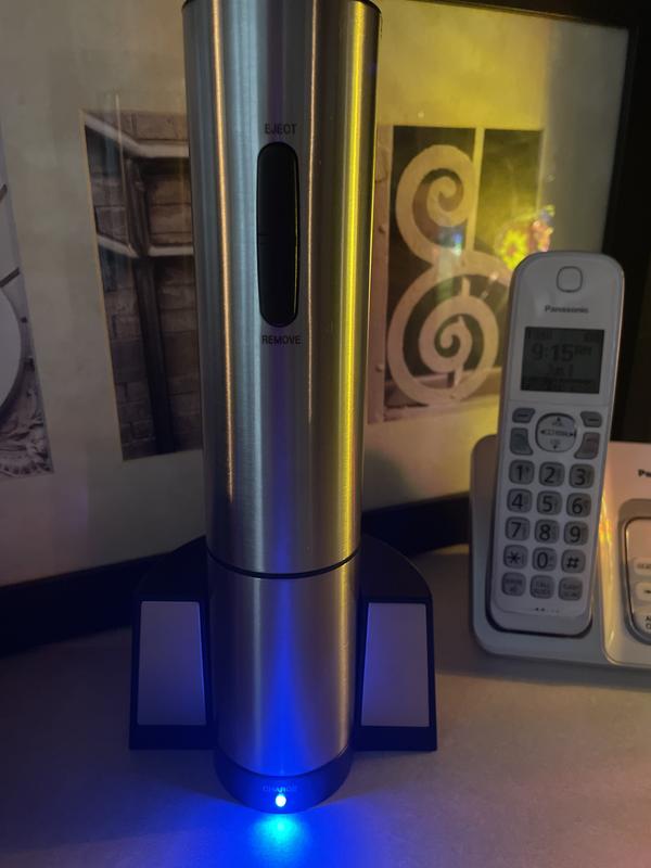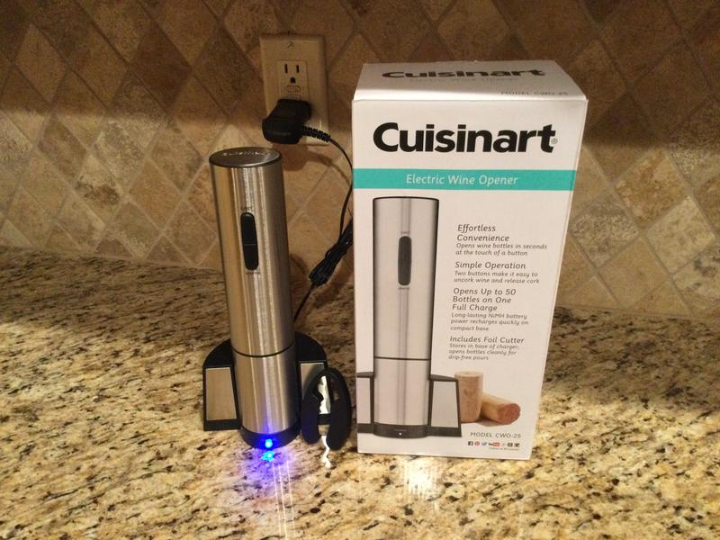 I absolutely love my new Cuisinart Electric Wine Opener! From the very first use, I was impressed with how sleek, modern, and comfortable it feels in hand. The operation is smooth, quiet, and effortless—no more struggling with stubborn corks or worrying about them breaking apart. With just the push of a button, it cleanly removes the cork every single time. The rechargeable base is a fantastic touch, keeping the opener ready to go whenever I need it. I also appreciate the included foil cutter, which makes opening a bottle of wine not only easy but also elegant. It has truly elevated my hosting experience, turning what used to be a small hassle into a fun and simple moment. I’ve used it several times already, and it has worked flawlessly with both natural and synthetic corks. It feels sturdy and well-made, and I can tell it will last a long time. This opener has quickly become one of my favorite kitchen tools—I honestly can’t imagine going back to manual corkscrews. Highly recommend to anyone who enjoys wine and wants a reliable, stylish, and effortless way to open bottles.