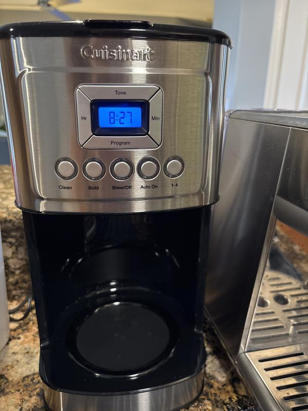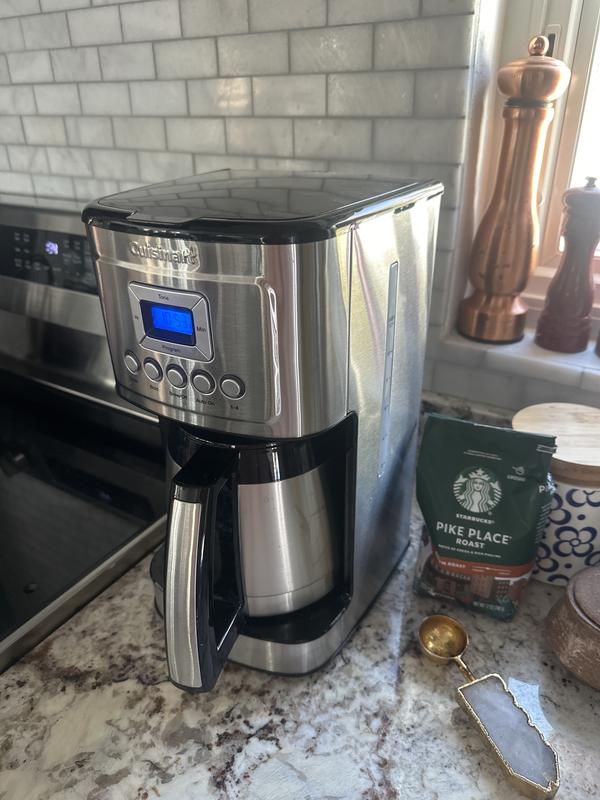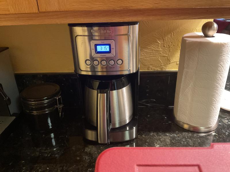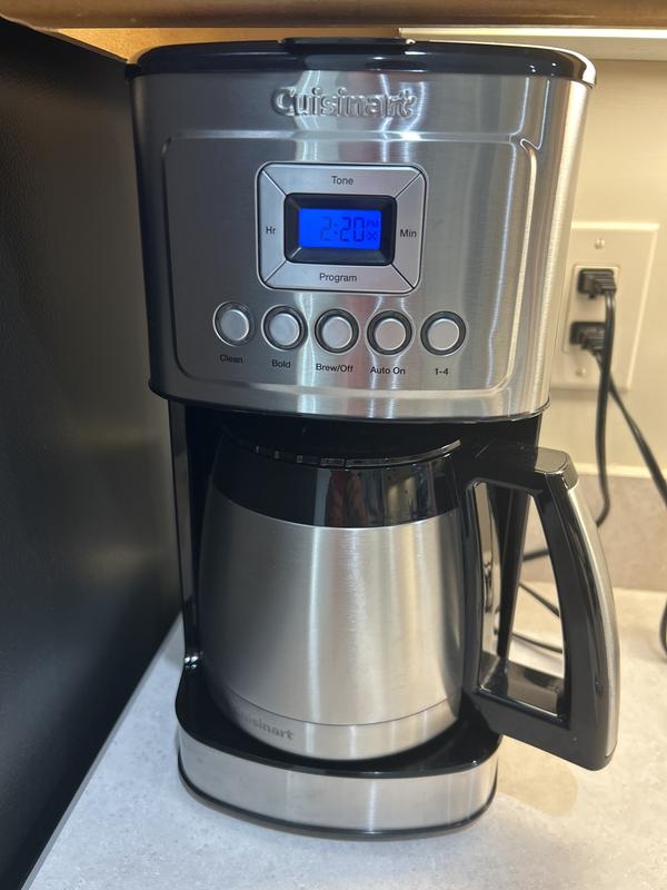 My beloved Mr. Coffee Thermal coffee maker died after 10+ years of service, a well thought out product. I purchased the Cuisinart as a replacement, as I have other Cuisinart small applicances...this was not cheap....there are several poor design issues: 1. The carafe weighs a ton 2. The pouring spout of the carafe is very awkward - you have to practically turn it vertical to get coffee out when it starts to get low. 3. The charcoal filter, at the bottom left corner of the unit is in a place where you KNOW its removal is going to be forgotten when cleaning 4. The water reservoir is in the back right corner of the unit, very awkward to reach with a pitcher of water. 5. There is a icon in the lower left of the LED screen that looks like a screw with a cross through it, that has NO explanation in the user manual...who knows what that means. The good news is that it makes good coffee, and takes a little less coffee; the coffee strainer doesn't need paper filters and is easy to clean.