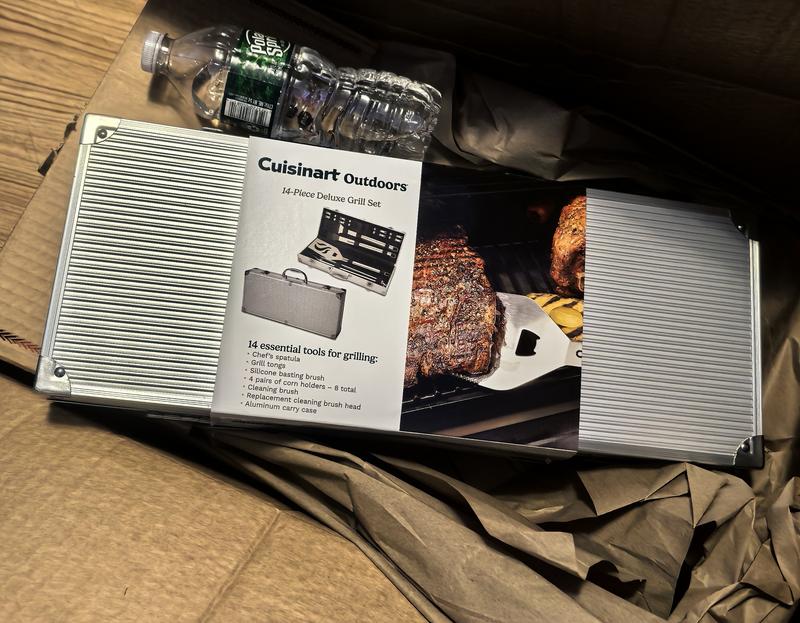 The Cuisinart Deluxe Grill Tool Set is all you need in one package. It is so wonderful to have everything In one neat container instead of loose tools all over the house. It's great for camping, tailgating, or any other travel activity.