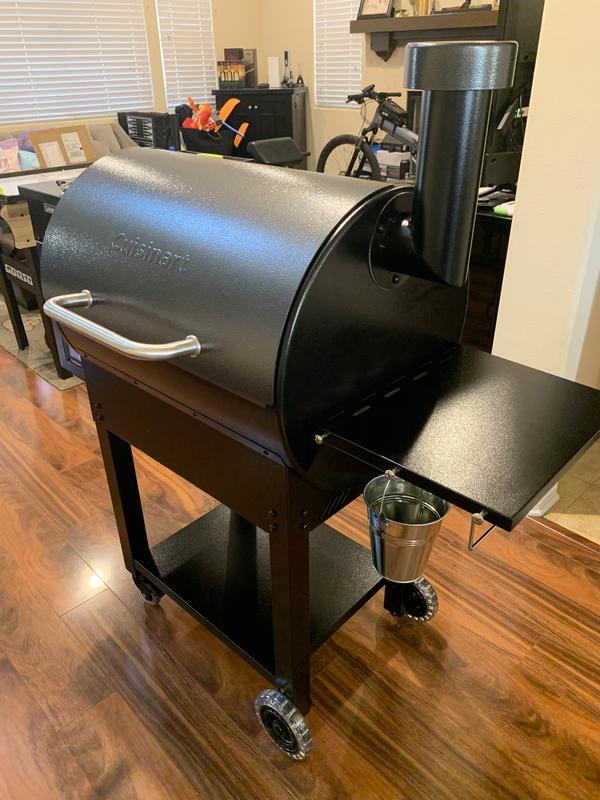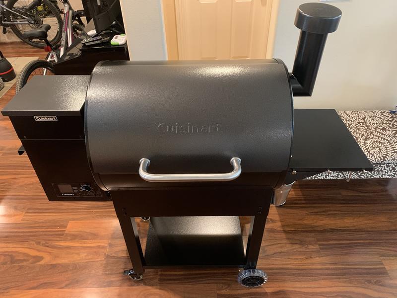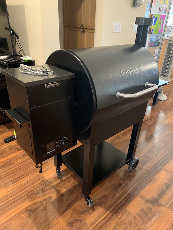 My husband was really excited to start using this Cuisinart Deluxe Wood Pellet Grill and Smoker. He has used it the past three weekends. It really came in handy this past weekend for mothers day. My husband made barbecue ribs, carne asada, chicken and hot links. The grill is big enough to cook for a large family like mine. The best feature is the pellet hopper that automatically adds pellets to control the temperature. It has 8 different cooking features like BBQ, bake, grill, roast and others that we have not yet tried. It comes with an electronic starter and LED temperature display and digital temperature control that makes it easy to used and prepare any meal. It also come with paper towels holder, bottle opener and two very useful temperature probes that allow us to take the internal temperature of the meat. Great tasting food with lots of flavor. All of our guest were very impressed with how good the food was and my husband loved the compliments. We will definitely keep grilling all summer long, love this pellet grill/smoker.