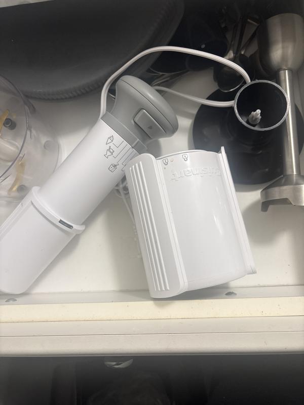Slim design makes it easy to store. I love the mix-in feature and the cup size is perfect for a single serving