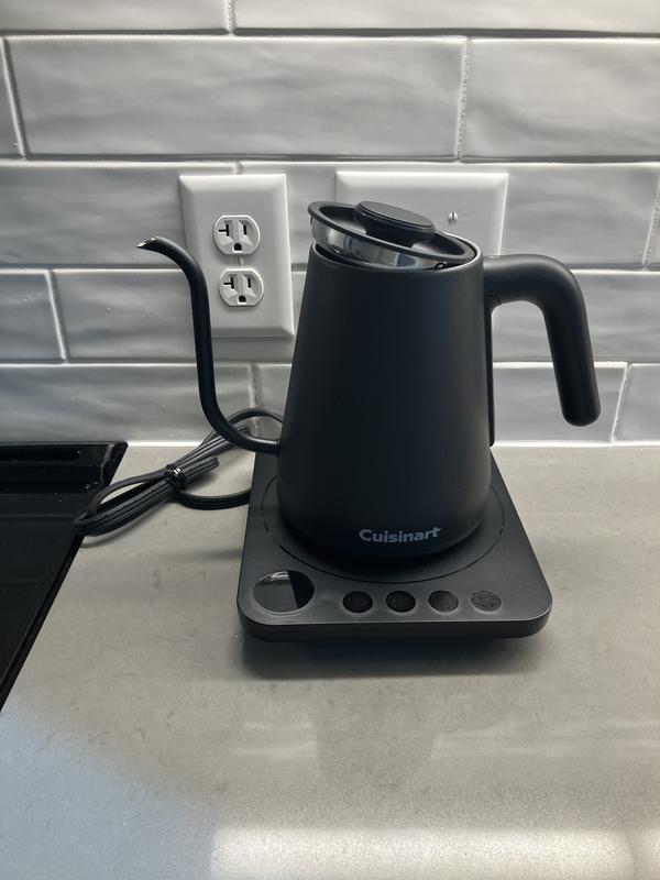 This kettle works really well and stands out, for us, for two reasons: the goose neck spout allows for a precision pour and the temperature control base. The latter heats the water to the temperature you desire and keeps it at that temperature by continuously reheating it. It also alerts you when the water initially reaches the set temperature. The temperature-setting controls are very simple and easy to use, and they work great for my wife and I: I drink coffee so desire my water to be hotter than what she wants for her tea, so whomever is making their breakfast beverage first just heats the water to the temperature they want and then resets the temperature to what the other prefers. We’re very happy with this kettle.