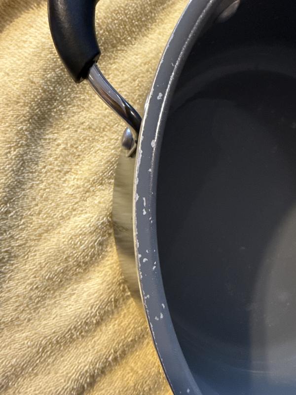 My husband bought these in a navy blue, I don’t see them on here none the less. I haven’t had them a year and the non stick is coming off! And I take very good care of my cook ware. I use them daily. I boiled chicken in them and left the broth over night and can’t get the smell out of them. I even had one of the emblems fall out. I was wow I thought these were supposed to to be a good quality. I used to have R.R. And they lasted way longer than your product did. I am very disappointed. I have to trash my small pan and my big pot. If you need a picture let Me know I’ll take one and send it.