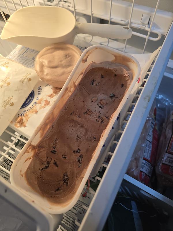 We keep the mixing bowl in our freezer. A couple hours before we want ice cream, we blend a few ingredients together. As we are putting our dinner plates together, we pour the mixture into the machine, turn it on, and delicious ice cream is ready to be served!
